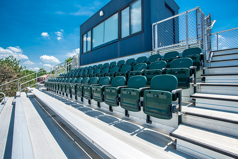 Code Improvements – Updating older bleachers to provide aisles with handrails and midsteps, guard rails to close off openings to be less than 4” sphere, and ADA Compliance for wheelchair spaces. These upgrades make the bleachers safer to use and prolongs their useful life.